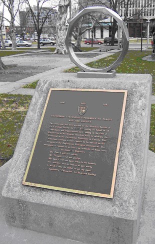 This monument has been erected by the Hamilton Section of the Canadian Society for Civil Engineering on behalf of all individuals and organizations participating in the field of Engineering in the Greater Hamilton area to celebrate the Centennial of the Engineering profession in Canada. This monument contains a time capsule to be opened on the occasion of the Engineering procession Bicentennial. The monument is capped by an iron ring symbolic of those worn by Canadian Engineers.
