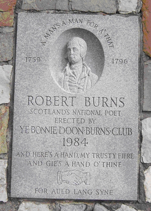 A Man’s a Man for a’That 1759 – 1796 Robert Burns Scotland’s National Poet Erected by Ye Bonnie Doon Burns Club 1984 And Here’s a Hand, my Trusty Fiere and Gie’s a Hand O’Thine For Auld Lang Syne